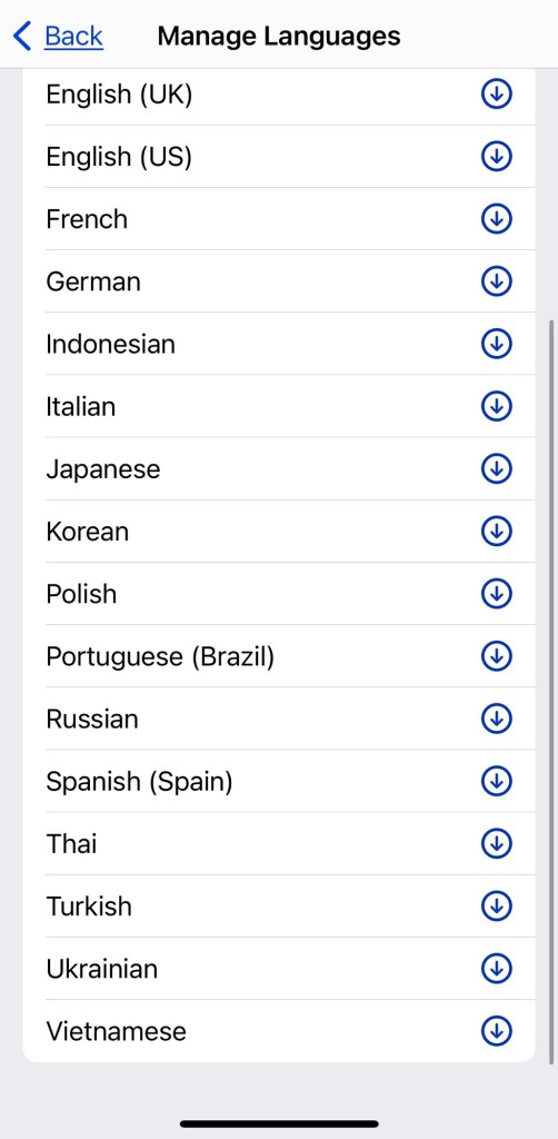 I would love to learn how new language dictionaries are added to iOS. Right now these are the languages that have built-in translation in Safari. It’s on my list of future dream projects to help work on getting Greek added.